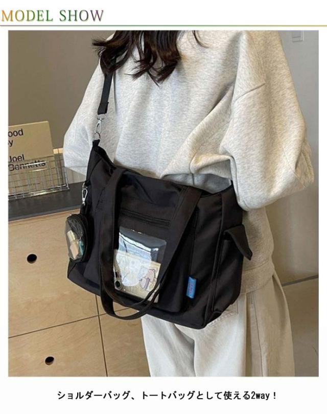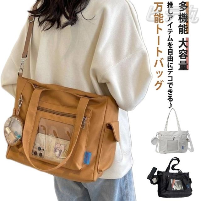 痛バッグ ショルダーバッグ トートバッグ キャンバス 2way 大容量 A4 痛バ ファスナー 透明バッグ スクール バッグ 斜めがけ 肩掛け トート バッグ 通学 通勤 旅行 オタ活 推し活 ヲタ活 多機能 鞄 カバン レディース 送料無料