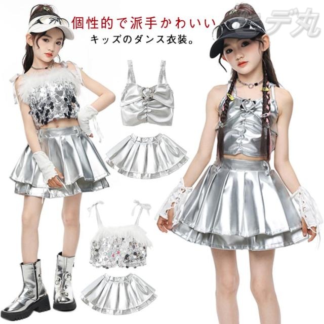 | ヒップホップやジャズなど、様々なシーンで使えるおしゃれなダンス衣装セットアップ。 個性的で派手かわいいキッズのダンス衣装。 スパンコールが輝くシルバーの女の子用ダンス衣装で、ステージで輝きましょう。 Y2K風のデザインがかわいい、ステージ衣装にぴったりな子供服。 発表会や応援団にもぴったりな練習服として最適。 | |