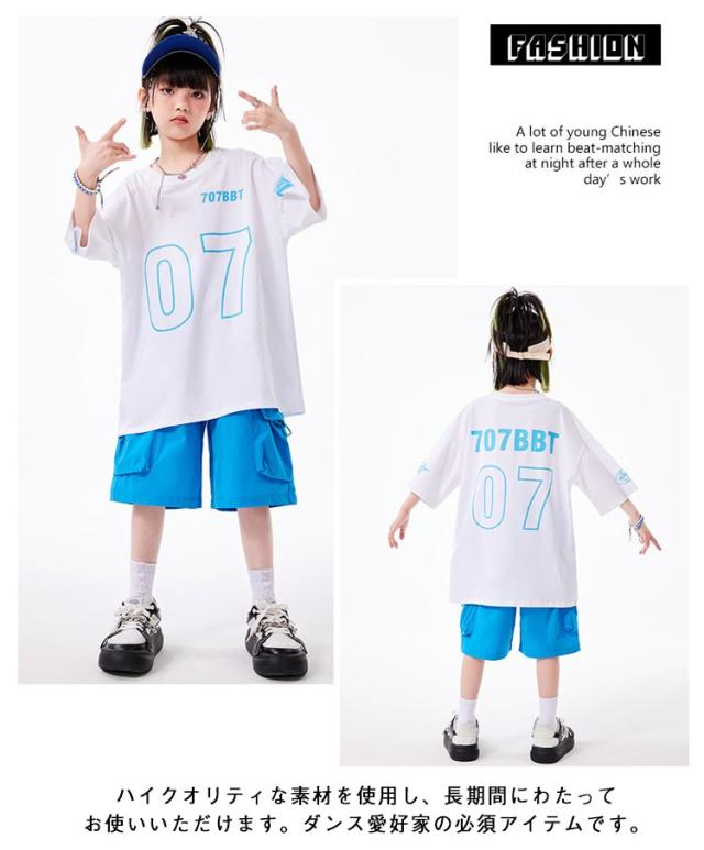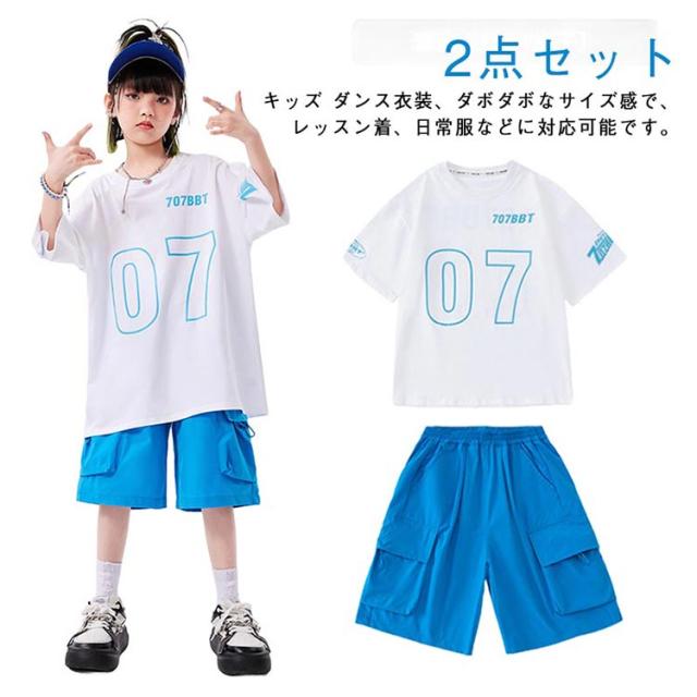 キッズ ダンス衣装 セットアップ ヒップホップ 韓国 子供服 男の子 女の子 ダンス 練習着 キッズ セット 子供 ダンス 衣装 jazz K-POP おしゃれ Tシャツ 半袖 ハーフパンツ 青 白 キッズダンス 体操服 チア オシャレ 原宿系