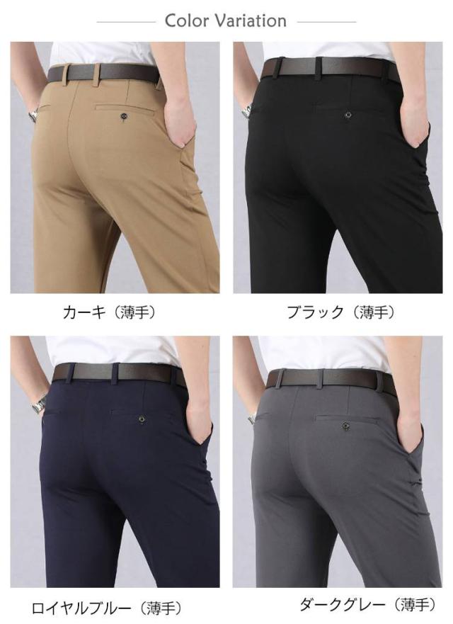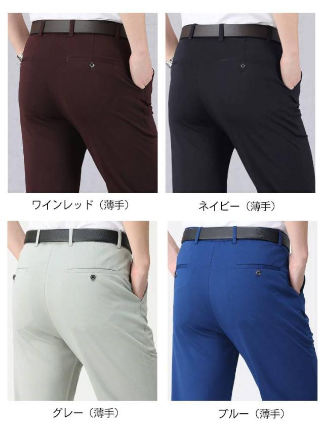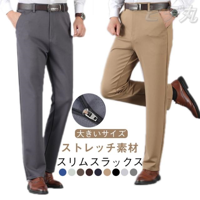 スラックス メンズ 春秋 夏用 ビジネスパンツ ズボン 大きいサイズ 薄手 伸縮 ストレッチ素材 ウォッシャブル カジュアル ビジネス 通勤 スーツ 美脚 スリム 男性