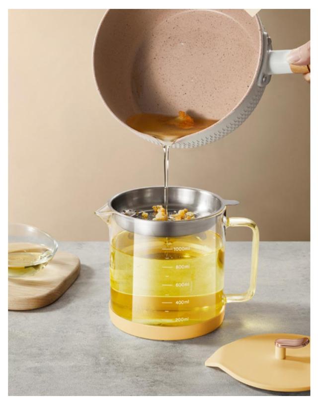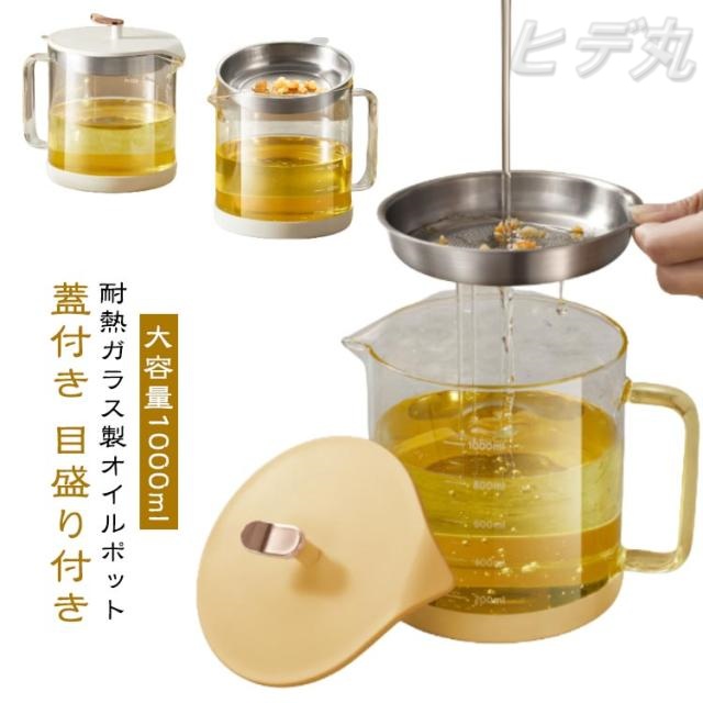 耐熱ガラス オイルポット ガラス オイル差し 油差し おしゃれ ガラスオイルポット フィルター 蓋付き 大容量 1L 1000ml 1リットル 目盛り付き 節約 再利用 油 保存容器 醤油差し 調味料ボトル 料理 キッチンアイテム 揚げ物