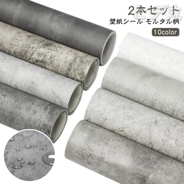 壁紙シール 2本セット モルタル柄 リメイクシート 長さ3M幅0.6M のり付き 貼ってはがせる 防水 おしゃれ 張り替え クロス シャビーシック コンクリート 石目調 ヴィンテージ アンティーク調 インダストリアル 浴室