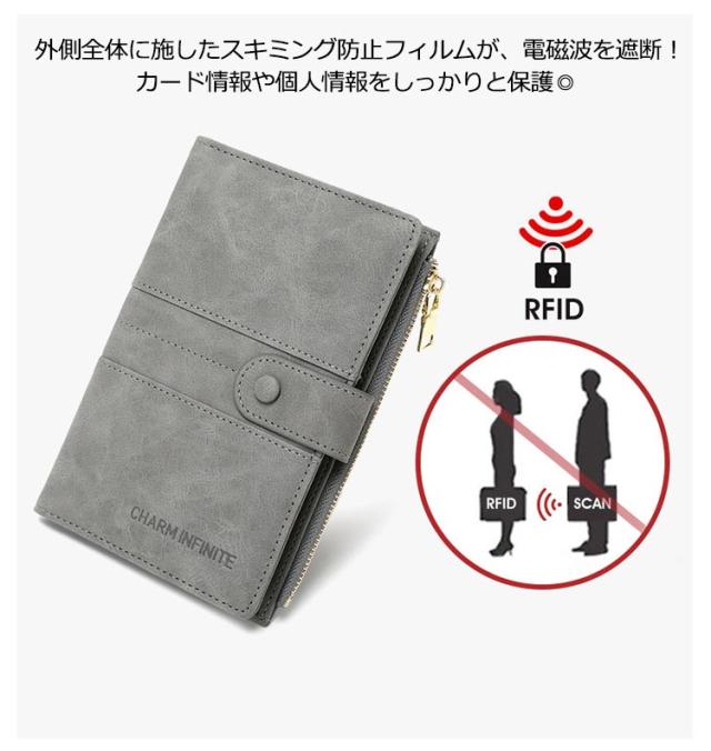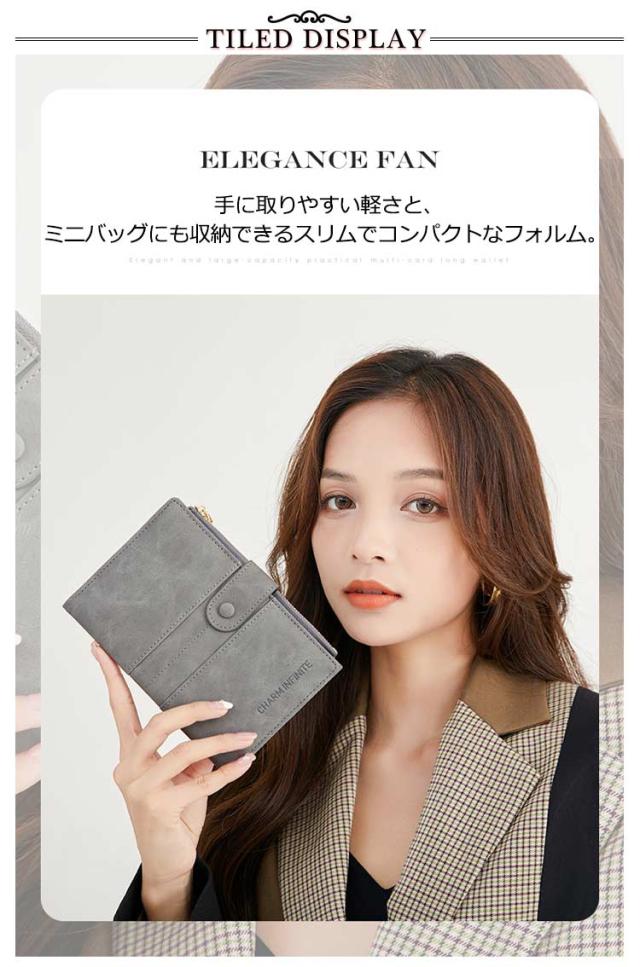 | シンプルでスタイリッシュなデザインのミニウォレット。 ミニバッグやアウターのポケットに収まるサイズ感。 スナップボタンでパッと開くフラップの内側に、札入れスペースと機能的なカードポケットを多数配置したシンプル構造。 ファスナー式の小銭入れを外側に配置。小銭をサッと出し入れできて、レジ前でも慌てない♪ リッチな素材感とシックなカラーが大人の魅力を引き立てる! コンパクトで持ち運びに便利なので、バッグの中でも場所をとらず、旅行や外出先でも使いやすいアイテム! | |
