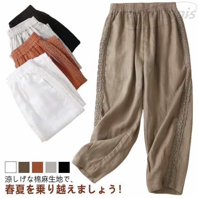 バルーンパンツ レディース コクーンパンツ テーパードパンツ 9分丈 リネン パンツ 春夏 イージーパンツ ウェストゴム 大きいサイズ 涼しい ゆったり 綿麻 おしゃれ リラックス クロップドパンツ ゆったり 体型カバー カジュアル ペチパンツ