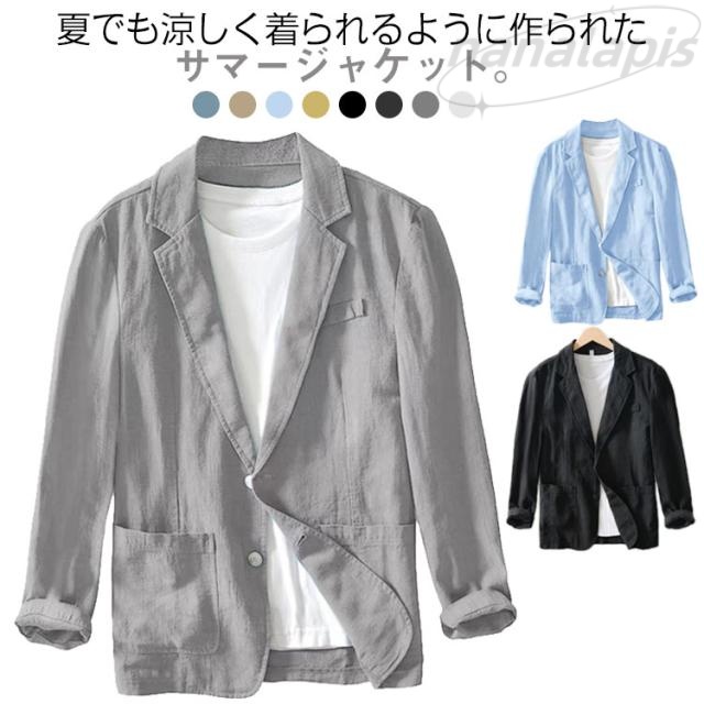 テーラードジャケット メンズ 春夏 長袖 綿麻 リネンジャケット サマージャケット ビジネス フォーマル ブレザー 40代 50代 60代 オフィス カジュアル サマースーツ スーツジャケット 紳士服 無地 ゴルフ 仕事 夏服 秋服 春物 父の日 プレゼント