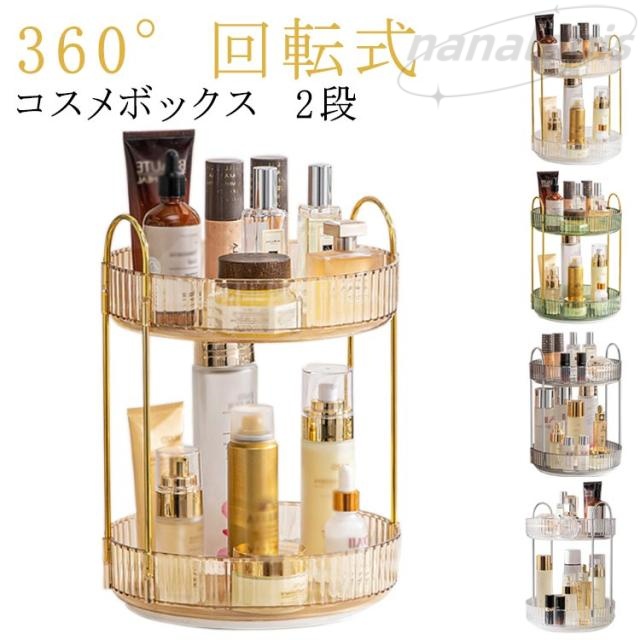 | 360° 回転式 コスメボックス 2段 丈夫なPET+金属素材で耐久性に優れています。 ベースが回転するので反対側に置いた物を取り出しやすく! 持ち手付きで運びやすい! 大容量でごちゃごちゃメイク道具もすっきり整理整頓 | |