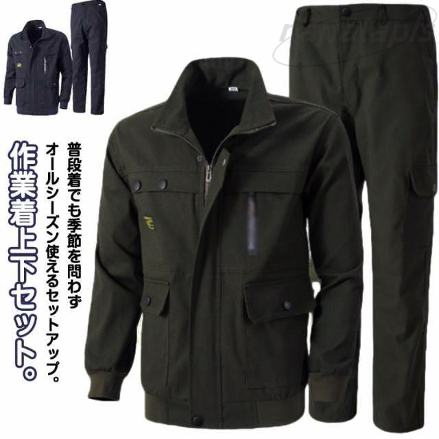 作業服 メンズ 上下セット ジャケット ロングパンツ 2点セット ミリタリー カーゴパンツ 長袖 作業着 ワークマン ワークウェア 作業着 丈夫 耐磨耗 ユニフォーム 制電 車 自転車 ガーデニング 掃除 工場 工事 現場 機能性 送料無料 春 秋