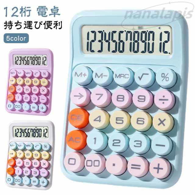 電卓 12桁 可愛い カラフル ミニ 電卓 卓上 ラウンドボタン 持ち運び便利 電卓 かわいい 丸ボタン 大型液晶ディスプレイ コンパクト 外出 おしゃれ オフィス用 事務用 計算機 12ビット ビジネスに最適 業務実務 時間計算