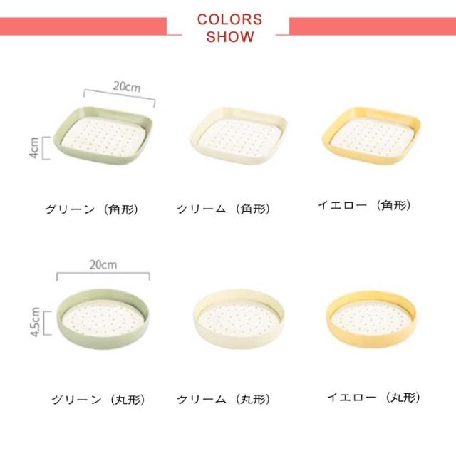 | サイズについての説明 | 2点セット内容:受けさせ皿+水切りプレート 角形:20*20cm*4cm 丸形:直径20cm*4.5cm |