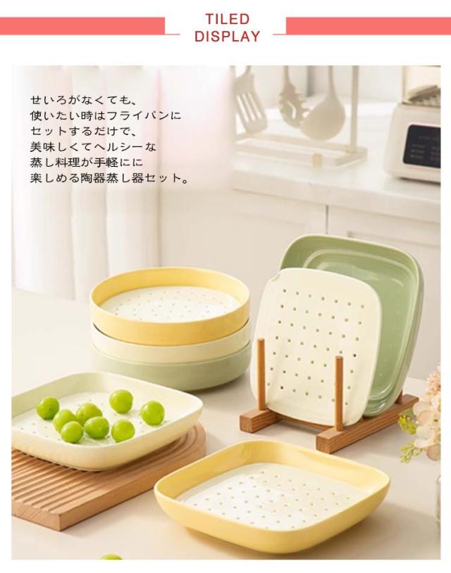 陶器の蒸し皿 蒸しかご 蒸しプレート セラミック 蒸し皿 うつわ セット 蒸し籠 蒸し器 水切り皿 蒸し野菜 蒸し料理 せいろ 陶器 餃子皿 レンジOK 食洗機対応 オーブン 陶器 ざる