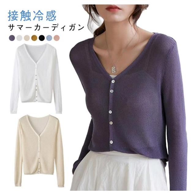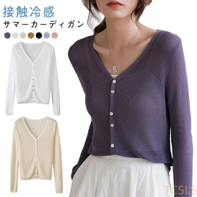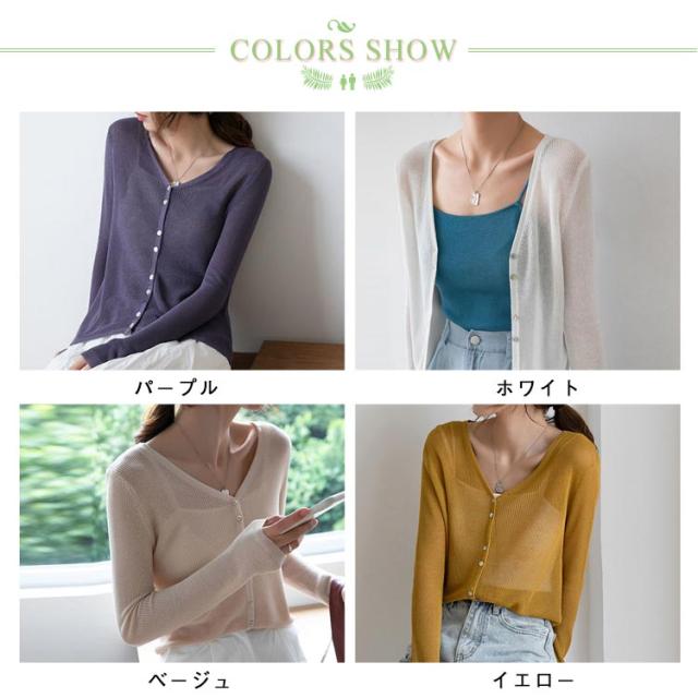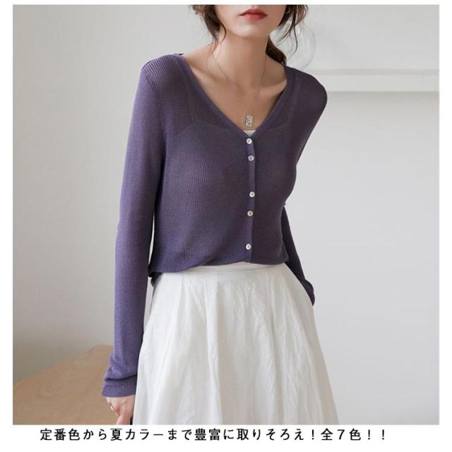 接触冷感 シアーカーディガン ショート丈 シアー カーディガン レディース トップス シアーカーディガン サマーニット サマーカーディガン 羽織り 体型カバー ゆったり 長袖 ドライタッチ 重ね着 羽織り 薄手 シンプル きれいめ 真夏 春夏 春 夏 送料無料