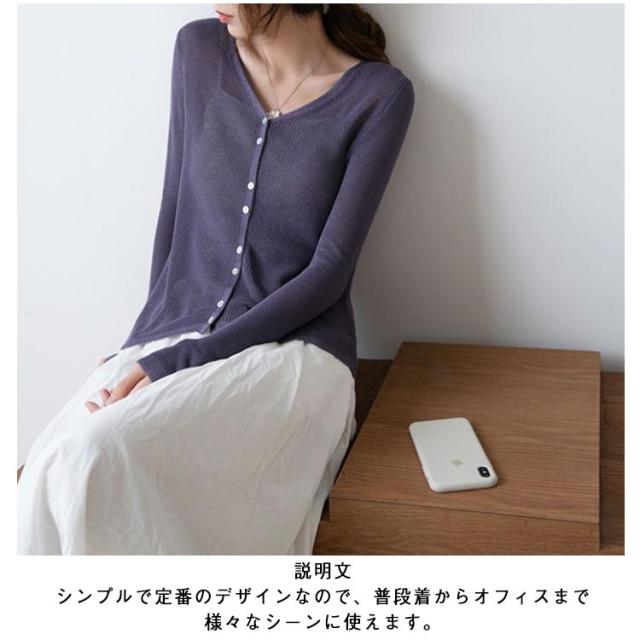 | シアー素材の透け感のあるサマーカーデ 薄手素材なので夏でも着れるカーディガン ストロングポイント これからの季節に最適な薄手も素材感 コンパクト&しわになりにくい生地なので、夏のエアコン対策として携行しやすい Tシャツの上から羽織っても、透け感のある商品なので涼しげに着て頂けます 定番色から夏カラーまで豊富に取りそろえ!全7色!! 説明文 シンプルで定番のデザインなので、普段着からオフィスまで様々なシーンに使えます。 デニムはもちろん、程よい透け感がガーリーにも仕上げてくれます♪ 肩にかけて羽織るだけでトータルコーディネートがワンランク上がりますね!! | |
