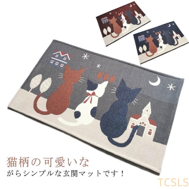 玄関マット 50×80cm 60×90cm エントランスマット 洗面所マット インナーマット カーペット バスマット トイレマット お洒落 猫柄 洗える 可愛い 室内用 ノンスリップ 滑り止め オールシーズン 送料無料
