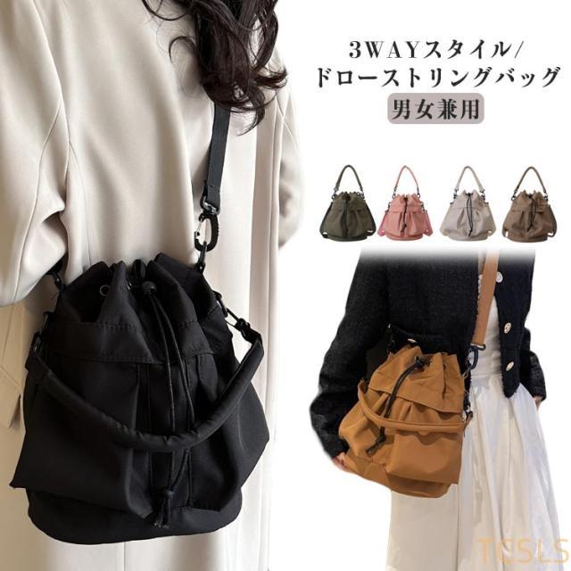 巾着バッグ ショルダーバッグ レディース 無地 ワンショルダーバッグ 巾着ショルダーバッグ バッグ 3way ドロストバッグ 鞄 かばん カバン シンプル 手提げ 肩掛け ショルダー トート 斜めがけ 旅行 ユニセックス 男女兼用 送料無料