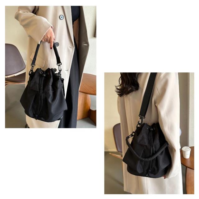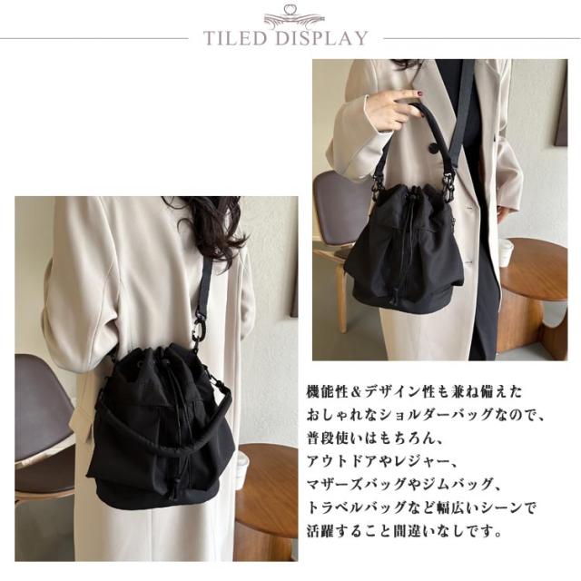 | 3WAYスタイル/ドローストリングバッグ コロンとしたシルエットが可愛らしい巾着型で、デイリーにもレジャーシーンにもハマる優秀なショルダーバック。 シンプルなデザインのため、カジュアルにもきれいめにも似合い、 男性にもご利用いただけるユニセックスなアイテムです。 前面、サイド、内側には複数のポケットがあり、 スマホや鍵などの小物もすっきり整理整頓できます。 取り外し可能なハンドルとショルダーストラップが付いており、 ハンドバッグ、ワンショルダーバッグ、ショルダーバッグとして使える3WAY仕様。 機能性&デザイン性も兼ね備えたおしゃれなショルダーバッグなので、普段使いはもちろん、アウトドアやレジャー、マザーズバッグやジムバッグ、トラベルバッグなど幅広いシーンで活躍すること間違いなしです。 | |