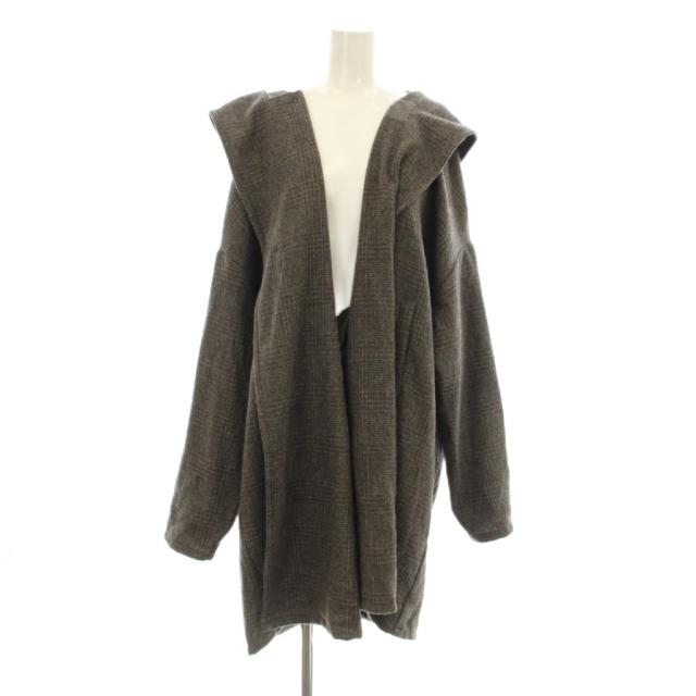 【中古】ミズイロインド ガウン コーディガン カーディガン フード ロング 長袖 チェック柄 ウール ブラウン ブラック