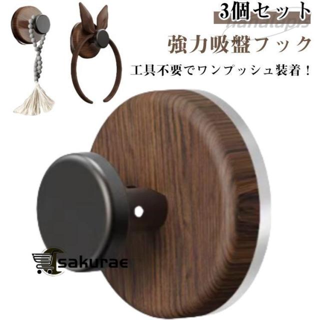 強力吸盤フック 3個セット 木目調 丸型 吸盤式フック おしゃれ 強力吸着 簡単設置 跡が残らない 穴あけ不要 繰り返し使える 壁掛け 省スペース お