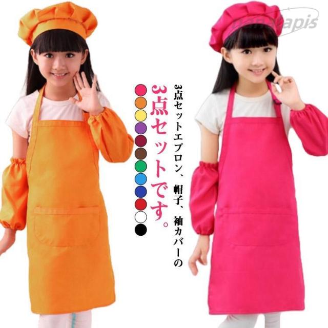 帽子 子ども エプロン 子供 女の子 キッズ 子供 かわいい セット エプロン 袖カバー 小学生 男の子 おしゃれ こども キッズエ プロン 低学年