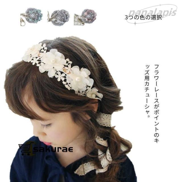 ヘアアクセサリー 女の子 花 レース ヘッドドレス 髪飾り 髪留め カチューシャ 子供 アクセサリー キッズ フォーマル 全3色 発表会 結婚式 七五