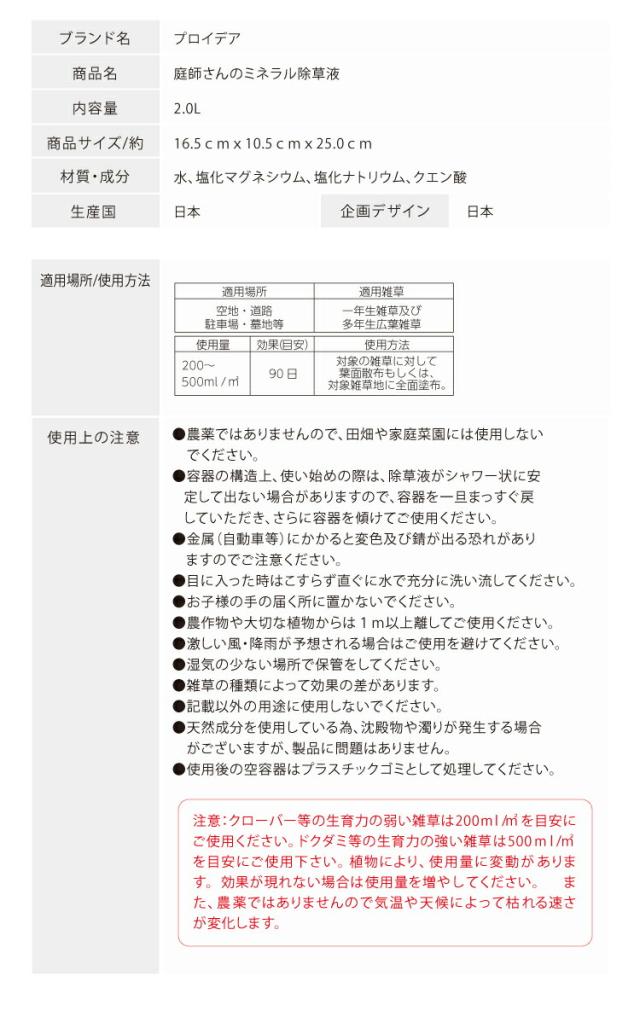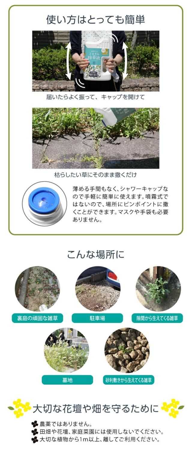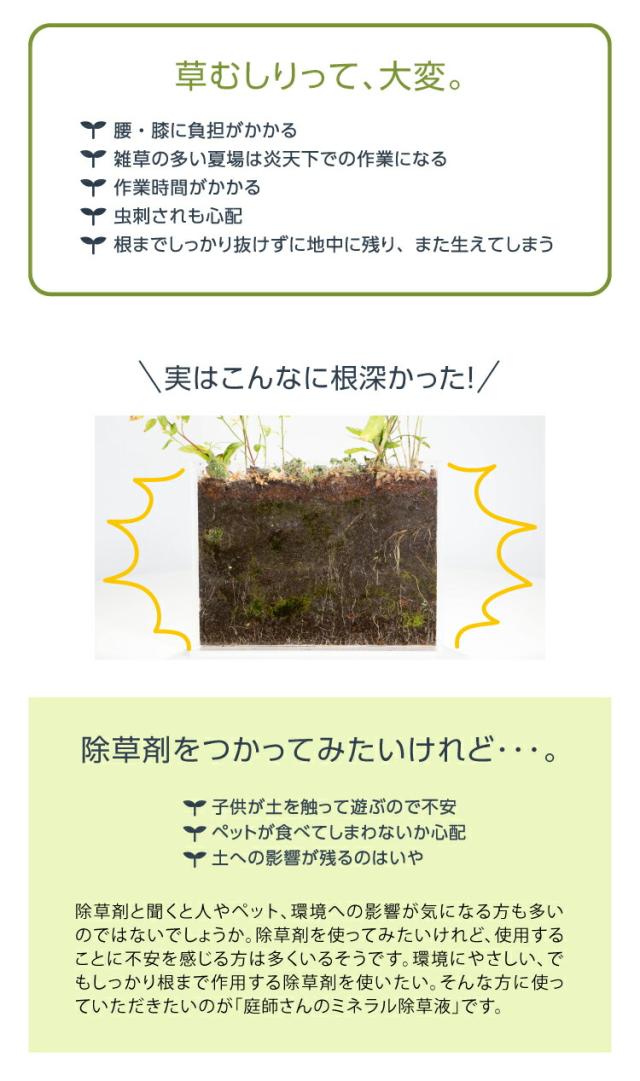 【庭師さんのミネラル除草液 2L(3個セット)】【送料無料】 除草剤 100%天然成分 無農薬 無害 安全 子供 ペット 環境にやさしい ミネラル クエン酸 除草液 ガーデニング 庭 雑草駆除剤 非農耕地用 草枯らし 雑草対策 雑草除去 kid