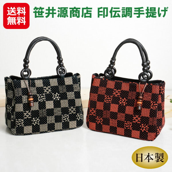 【笹井源商店 印伝調手提げ】【送料無料】 印伝 バッグ 手提げかばん 手提げカバン トートバッグ レディース 黒 赤 和装 洋装 兼用 3層構造 大容量 ファスナー あおり式 高級感 おしゃれ 大人 エレガント 女性 母の日 敬老の日 プレゼント is