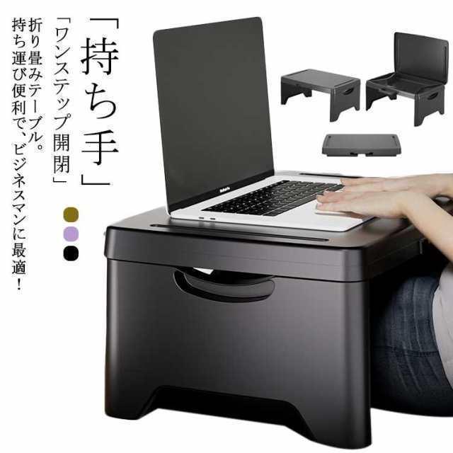 | 折り畳みテーブル。持ち運び便利で、ビジネスマンに最適! 軽量で使い勝手の良い、折り畳み式の膝上テーブル。 コンパクトで持ち運び便利! 場所を選ばない。ベッドや椅子の上、車内でのPC作業や食事等、様々な場所で活躍! 「持ち手」により楽々持ち運び。 「ワンステップ開閉」の折り畳み脚。 テーブルの中に「収納スペース」。 「コンパクト」な折り畳み構造! | |
