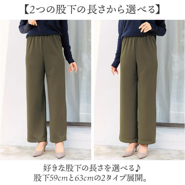 | 商品説明 | 【寒い日のお出かけに】 ・裏起毛でしっかり寒さ対策♪オンオフ問わず使えるきれいめワイドパンツ。 【2つの股下の長さから選べる】 ・好きな股下の長さを選べる♪股下59cmと63cmの2タイプ展開。 【寒さ対策ができる裏起毛】 ・パンツの内側は裏起毛になっており、内側の温もりを逃がしにくく外側からの冷気からカバー。 【ストレスフリーに穿ける】 ・ウエストはゴム仕様で締め付け感がなく、いつでも快適に穿けるのも嬉しいポイント。 【オフィスカジュアルにも】 ・シンプルな見た目で普段使いはもちろん、オフィスカジュアルにも使える♪ 【幅広コーデに活躍☆】 ・トップスの色を選ばないベーシックカラー中心のラインナップ。幅広いコーデに対応。 |
