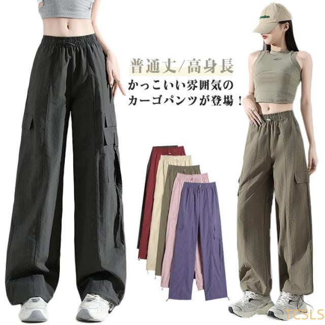 カーゴパンツ レディース ロングパンツ ワイド 薄手 ボトムス ウエストゴム ダンス用 ポケット付き 動きやすい 春 夏 秋 カジュアル パンツ ズボン ゆったり 無地 女性用 シンプル かっこいい 韓国ファッション 春夏秋用 送料無料