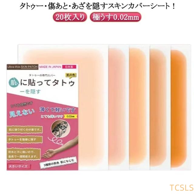 タトゥー隠し 20枚入り 送料無料 タトゥー・傷あと・あざを隠すスキンカバーシート!20枚入り ウォータープルーフ 極うす0.02mm ファンデーション 隠す テープ シート シール リストカット隠し あざ隠し 痣隠し タトゥー隠し 消し ほくろ 防水 素肌シール