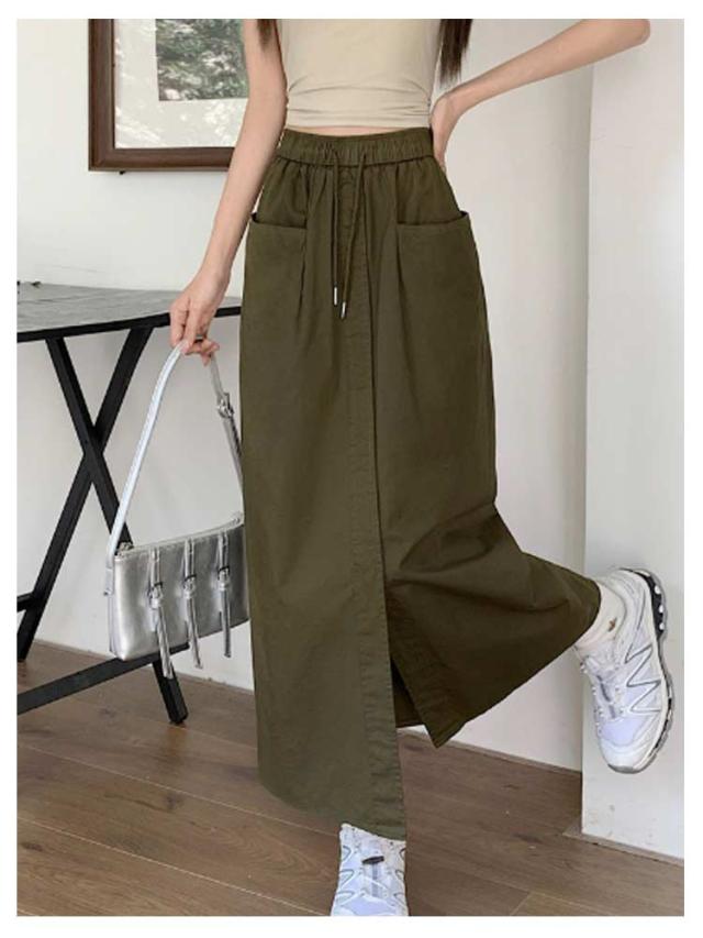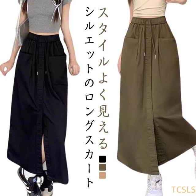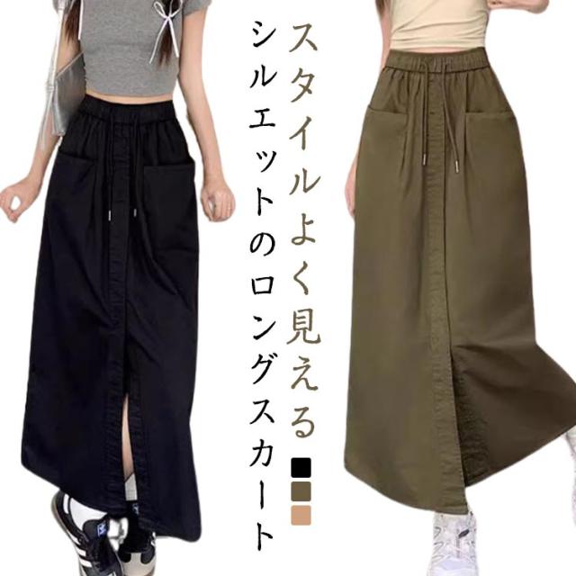 スカート タイトスカート レディース ロングスカート カーゴスカート マキシ丈 春 夏 Aライン ウエストゴム 大きいサイズ 韓国ファッション 体型カバー 着痩 20代 30代 40代
