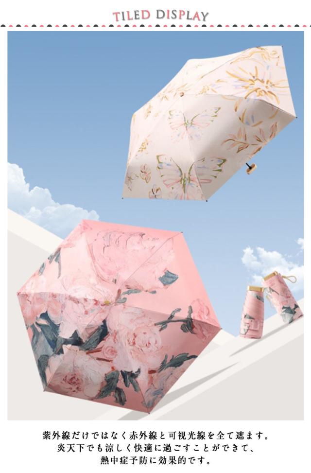 | 光を通り抜けない多層構造を採用し、UVカットと遮光機能に優れ、UVカット率99%、UPF50+です。紫外線だけではなく赤外線と可視光線を全て遮ます。炎天下でも涼しく快適に過ごすことができて、熱中症予防に効果的です。 収納後の大きさは15cm、手のひらサイズです。軽くてコンパクトで持ち運び便利、カバンに入れて常備しても負担になりません。 水滴が流れ落ちやすいので、軽く振るだけで雨水が落ちます。 折りたたみ日傘フラットなデザインで、バッグに簡単に入れることができます。可愛くて女の子にぴったり! | |