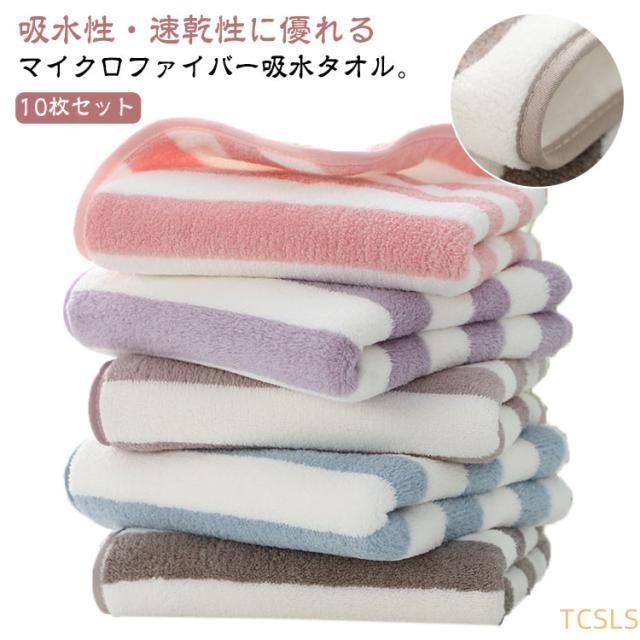 厚手 タオル ボーダー柄 10枚セット まとめ買い フェイスタオル 吸水タオル マイクロファイバー 吸水 速乾 乾きやすい ふわふわ ふんわり 柔らかい 抗菌防臭 バスタオル おしゃれ 春夏秋冬 大人用 タオル 通気性 業務用 家庭用 部屋干し 毛落ちしにくい 安い 【送無】