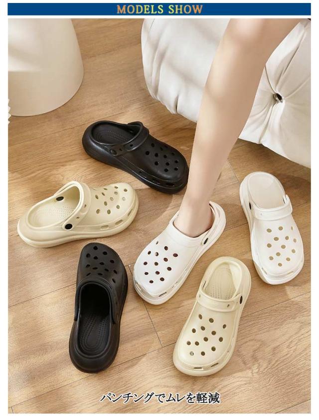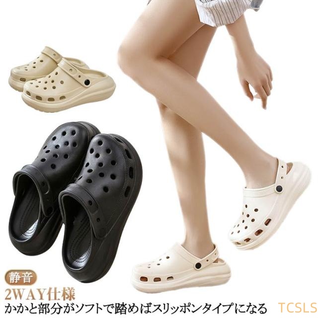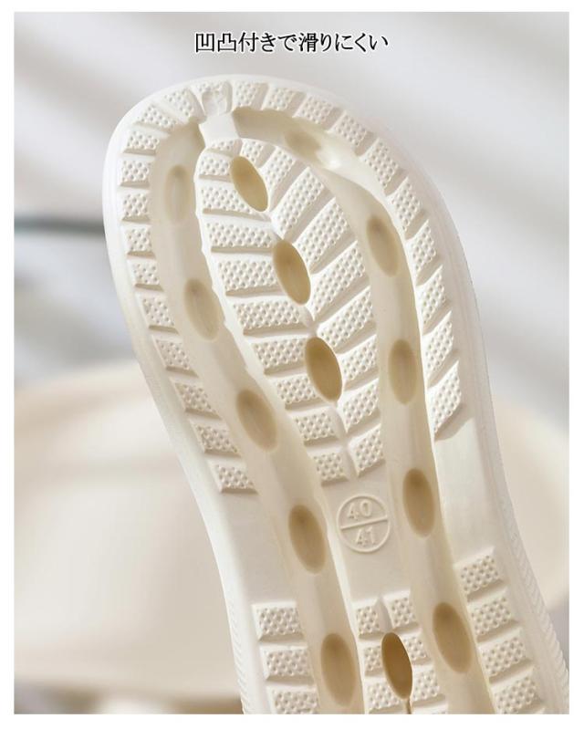 | (2WAY仕様)かかと部分がソフトで踏めばスリッポンタイプになる ・凹凸付きで滑りにくい ・パンチングでムレを軽減 ・インソールはより柔らかなEVA素材で衝撃を吸収 ・通気孔でムレを軽減 ・洗っても乾きやすい! | |