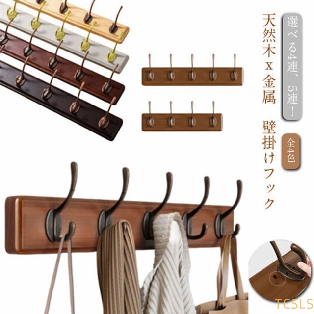 | 【選べる4連、5連!】【天然木x金属 壁掛けフック】【全4色】 木製の土台にビンテージなデザインの金属フックがついている壁に取り付けられるコートラック。 ジャケット、帽子、スカーフ、タオル、鞄などを掛けるのに最適。 丈夫な木の板をベースに、丈夫な金属製のフックを取り付けたラックは、壁にすっきりと収まるシンプルで魅力的なデザイン。 ネジまたは接着剤で簡単取り付け可能。 かさばるローリングラックやコート掛けに代わる省スペースのデザインで、玄関、寝室、バスルーム、クローゼットなど、さまざまな場所に設置できる。 【設置方法】 1.取付位置を決めてください。 2.商品が水平になるように穴位置をけがいてください。 3.ネジ穴をあけ、付属の壁取付ねじで固定してください。 4.接着剤で取り付けも可能です。 | |