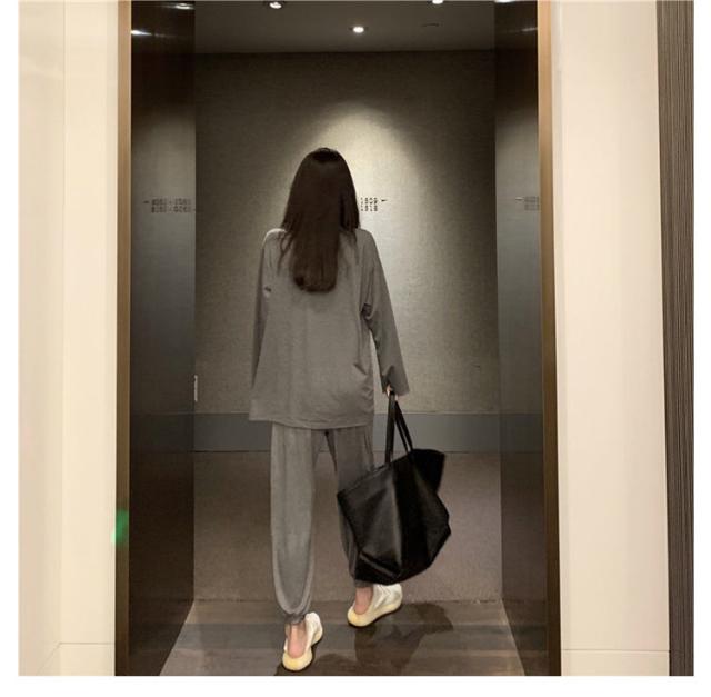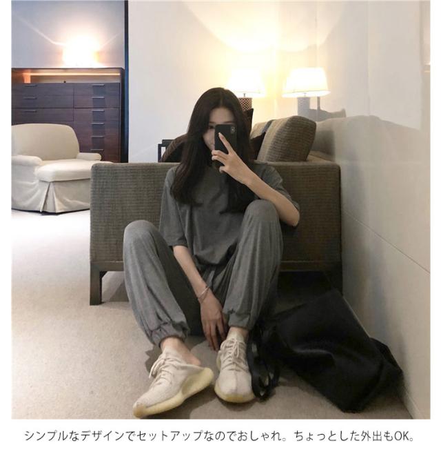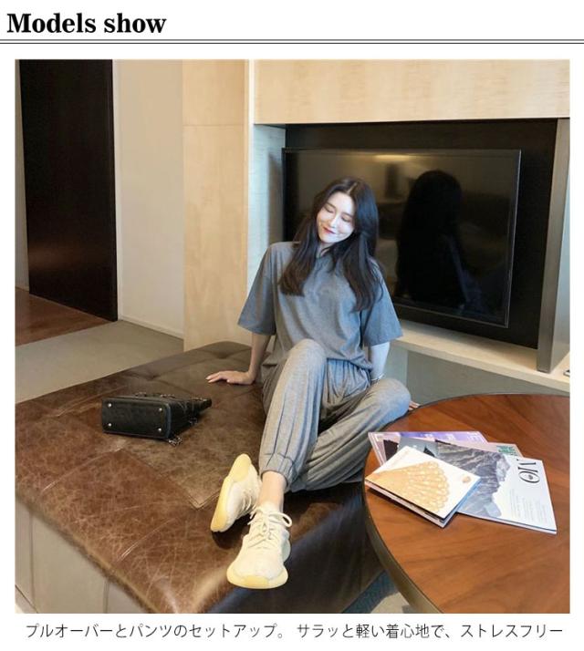 | おうち時間が快適になるルームウェア上下セットです。 プルオーバーとパンツのセットアップ。サラッと軽い着心地で、ストレスフリー ゆったりしたサイズでルームウェアや普段着としてはもちろんのこと。なめらか素材で動きやすいです シンプルなデザインでセットアップなのでおしゃれ。ちょっとした外出もOK。 | |