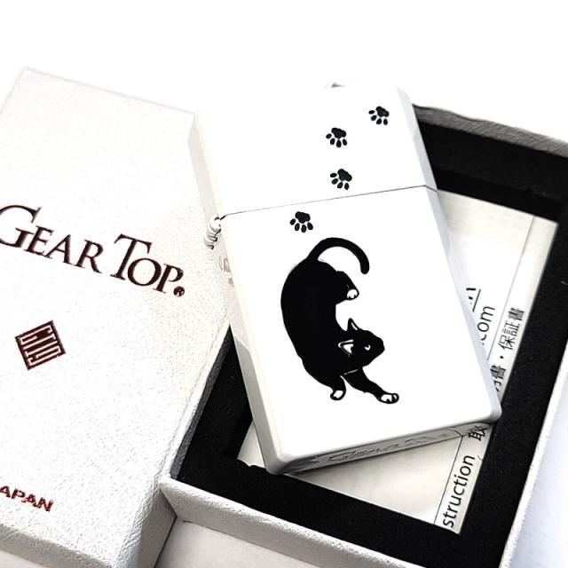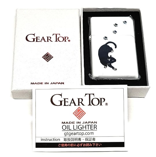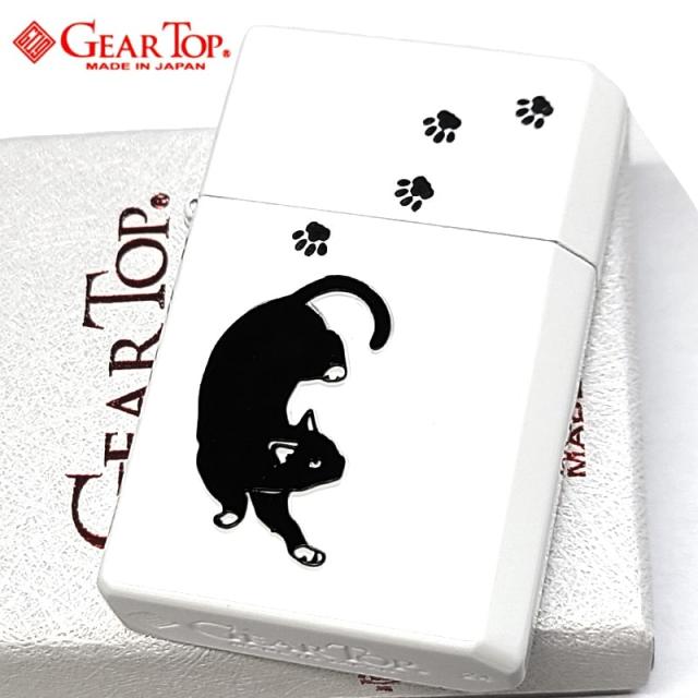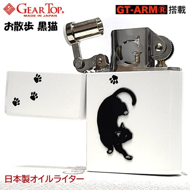 オイルライター 日本製 ギアトップ おさんぽ黒猫 可愛い GEAR TOP ネコ 国産品 重厚 ホワイト 動物 アニマル 彫刻 おしゃれ ねこ かわいい メンズ レディース ギフト プレゼント
