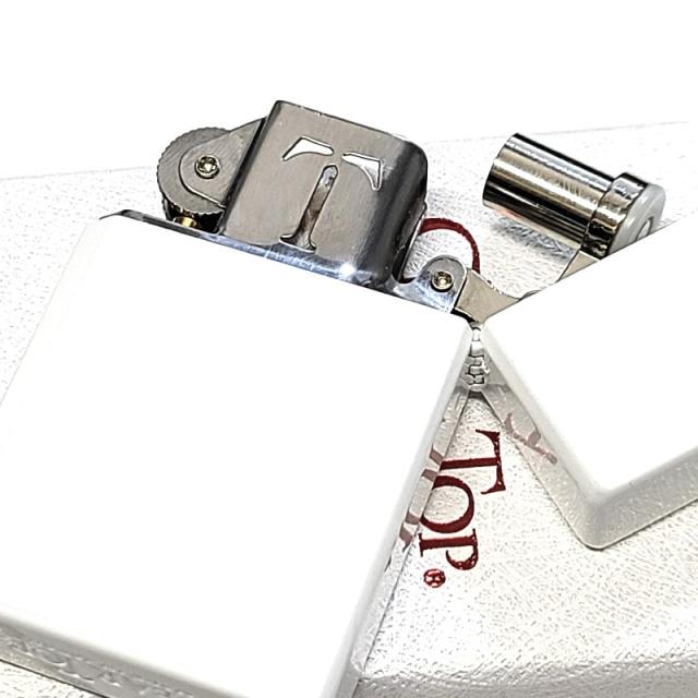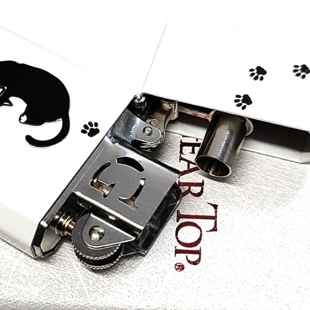 ホワイトで仕上げた本体にお散歩中の黒猫メタルを施した可愛らしいギアトップライター。