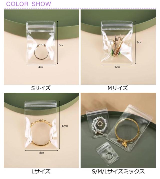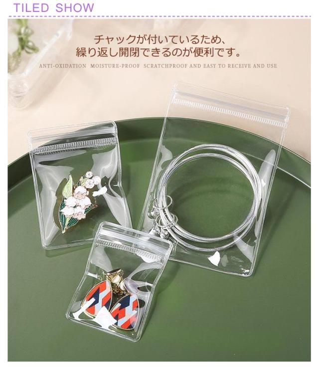 チャック袋 50枚入 アクセサリー チャック付きポリ袋 透明 クリア 厚手 ジュエリーバック 小分け袋 ジュエリーポーチ PVC チャック袋 アクセサリー 袋 チャック付 整理袋 収納袋 ラッピング 小袋 密封 変色防止 防水 防湿 防カビ 収納袋