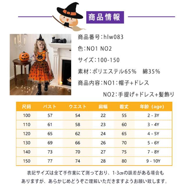 商品名 | ハロウィン 衣装 魔女 子供 コスプレ 女の子 ワンピース 帽子付き ドレス ノースリーブ 小悪魔 吸血鬼風 可愛い ウィッチ プリンセス コスチューム セットアップ 【帽子+ドレス & 手提げ+ドレス+髪飾り】 選べる2タイプ オレンジ色 100 110 120 130 140 150cm 160cm |