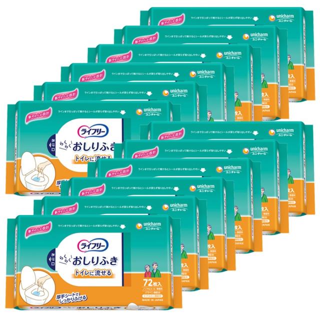 ライフリー 大人用おしりふき トイレに流せる 864枚(72枚×12) ケース品