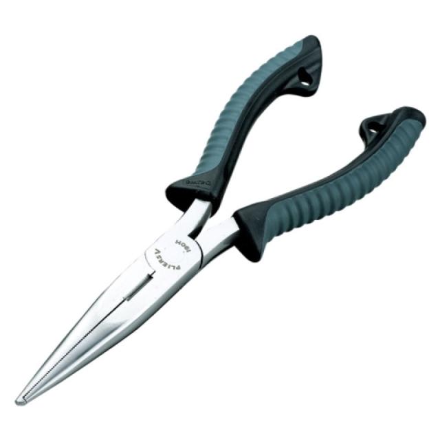 ●丈夫で安心のヘビーデューティー厚肉ステンレスボディー●手にやさしいソフトタッチグリップ(ロープ取付け穴付き)●魚の口つかみ、スプリットリング外しに使用できる先端部●ハリ外し、ガン玉つぶしにもピッタリ●ナイロン・フロロカーボンライン用ラインカッター付き[ダイワ/グローブライド][ペンチ]/海上釣堀/