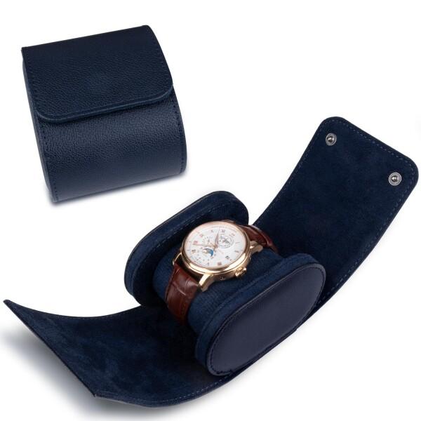 【時計トラベルストレージロール】高品質なPUレザーを使用した時計収納ボックスは、1本の時計を収納可能。2つのボタンロックでしっかりと固定できるため、時計を紛失や傷から守ります。また、ホコリや腐食を効果的に防ぎ、大切な時計を美しく保管・展示するのに最適です。