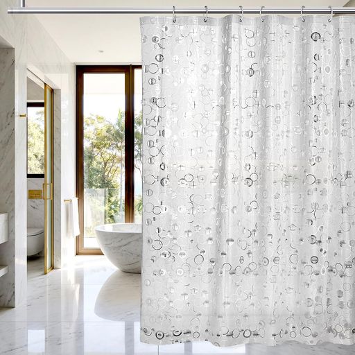 【半透明で3D立体模様】シンプルな半透明ビニールカーテンなので、バスルームがいつも明るく見えます。バスカーテンの表面は特別に加工されており、距離が離れるほど画面の立体感が高くなり、目隠しよく、プライバシーを保護されます。