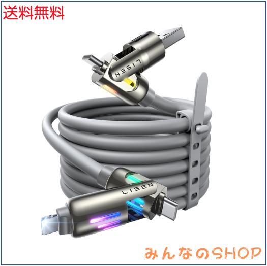 ◆商品名:LISEN ライトニングケーブル【2M, 最大240W】マルチ充電ケーブル4in1 液体シリコーン タイプc 急速充電 480Mbps データ転送, C to C/タイ