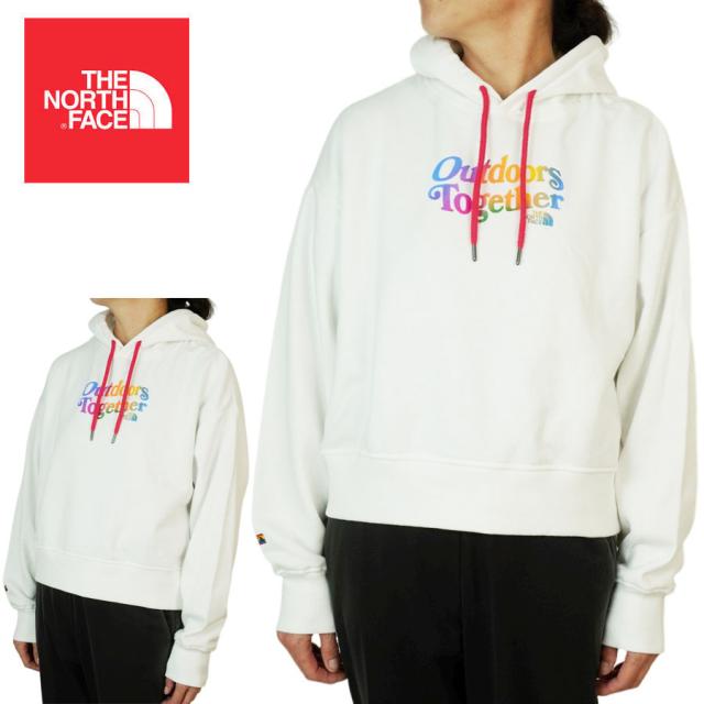 ノースフェイスTHE NORTH FACEフーディー パーカーW PRIDE HOODIE ウィメンズ プライド フーディホワイト 白 white短め クロップ フード レインボー ジェンダーレスジェンダーフリー ロゴ 裏起毛
