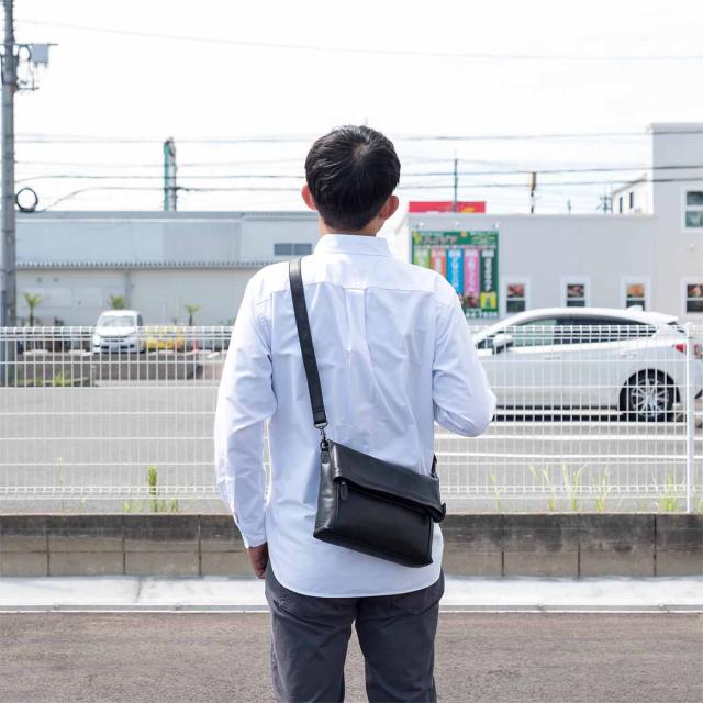 口折れタイプのショルダーバッグで、500mlペットボトル・長財布をしっかり収納できます。
