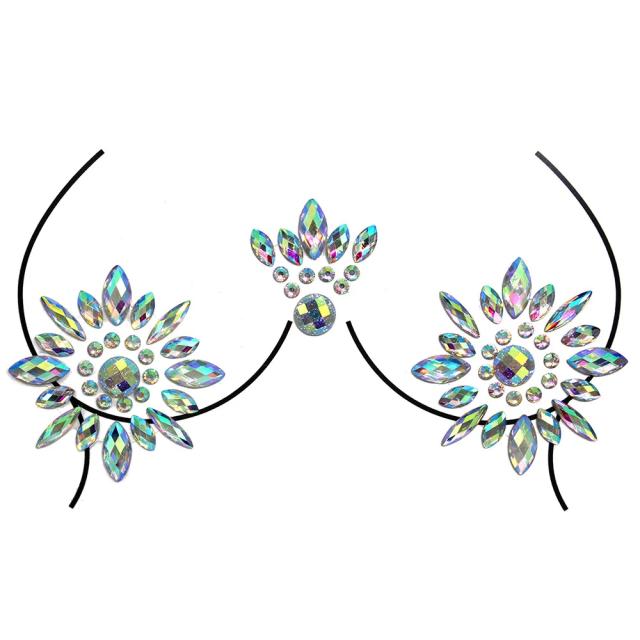 チェスト用(胸元用) ジェムボディステッカー (フラワーシャトル) 1シート 貼る 虹色 レインボー シール アクセサリー クリスタル 下着 ブラ ランジェリー レディース ダンサー 女子 ボディーアート メイク ニップレス 胸 ダンス ニプレス 身体 腕 顔 腹 大きい ストーン
