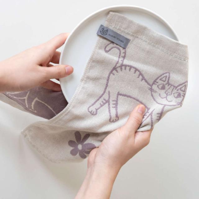 ねこ画家 おかべてつろう先生監修のふきん