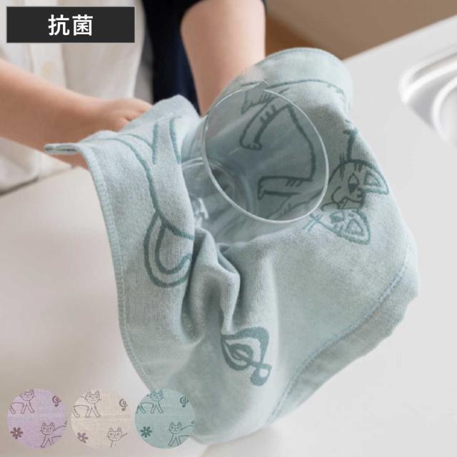 布巾 おかべてつろう Ag+ 抗菌 ふきん ( キッチンクロス フキン クロス 銀イオン 光触媒抗菌 ネコ ねこ 可愛い キッチン用 台拭き 食器拭き 台ふきん おしぼり キッチンタオル 万能 キッチングッズ )