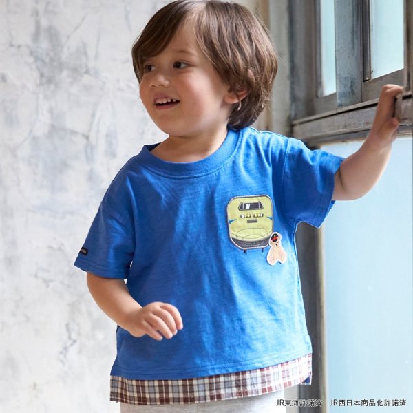【新幹線】裾チェックアップリケ半袖Tシャツ